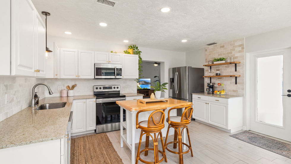 Welcome to 6503 25th St W, a beautifully renovated home in the desirable Bayshore Gardens community. Blending modern updates with timeless charm, this residence offers the character missing from many new construction homes. With dual living spaces and plank tile flooring throughout, the open layout highlights a spacious kitchen with quartz countertops, stainless steel appliances, and a striking marble backsplash. Both bathrooms have been tastefully updated to provide modern comfort.